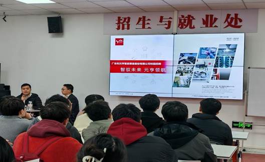 动员会结束后,利元亨公司专场招聘会启动。企业招聘负责人苏经理和王工程师详细介绍了公司发展、招聘岗位、人才培养及薪酬福利等内容,并在现场与投递简历学生开展一对一面试。
