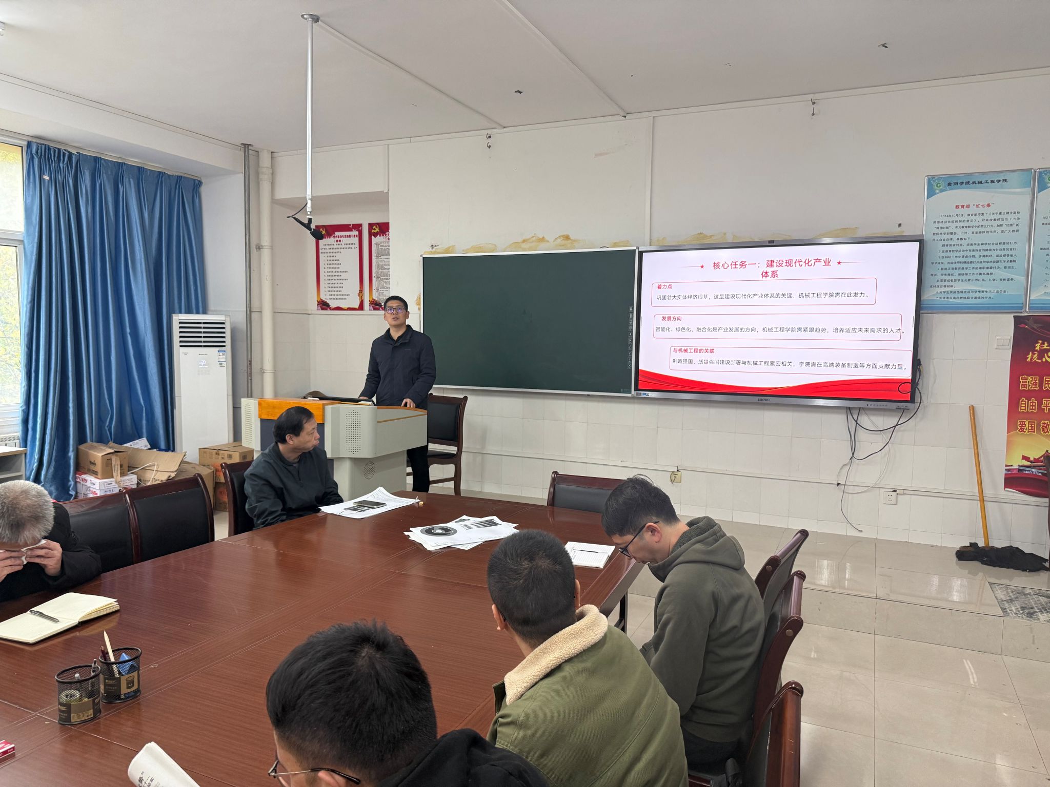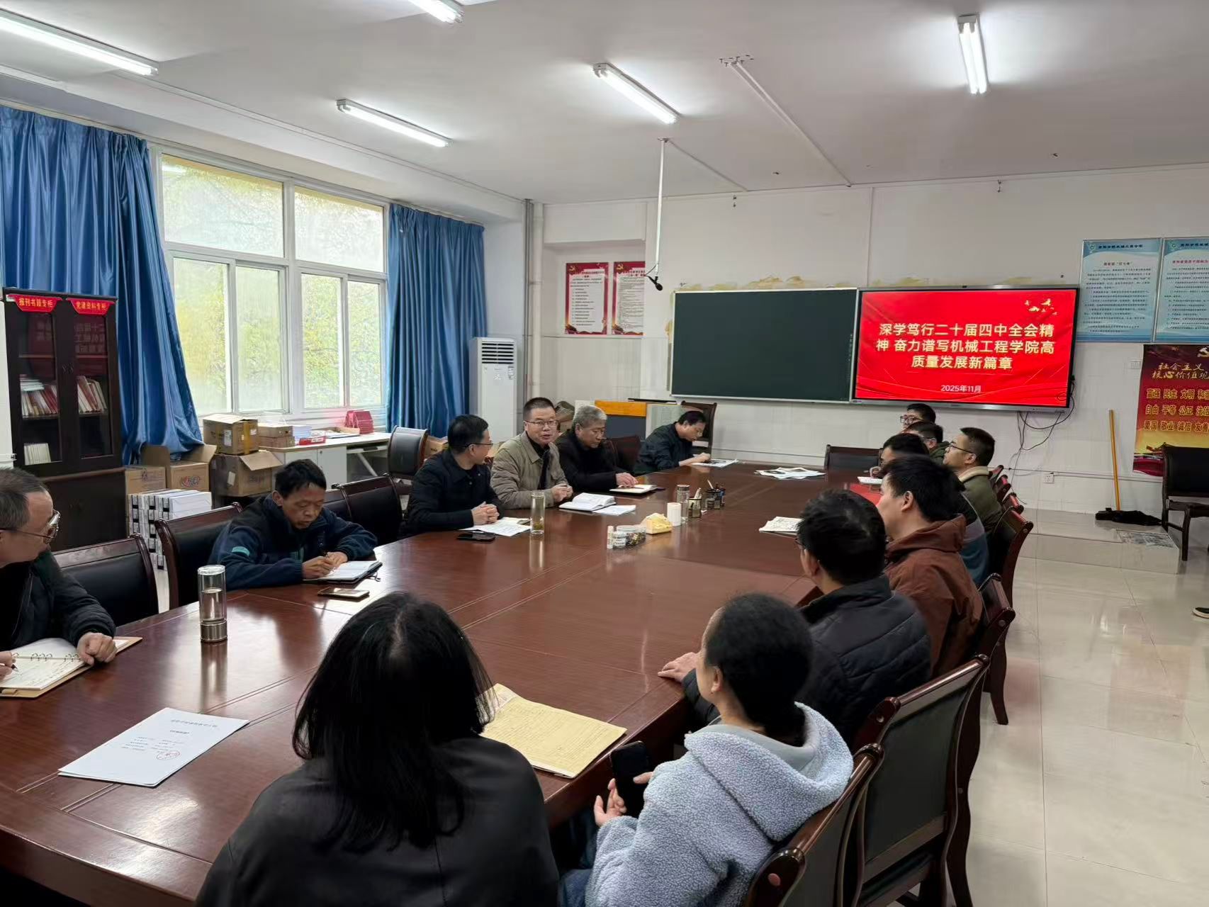 为深入学习贯彻党的二十届四中全会精神,精准对接“十五五”规划战略部署,切实将思想和行动统一到国家发展大局与高等教育改革要求上来,11月12日,贵阳学院机械工程学院召开全体教职工大会,以“深学笃行党的二十届四中全会精神,奋力谱写机械工程学院高质量发展新篇章”为主题开展专题学习活动。学院党委书记吴家福、院长李疆、教师支部书记刘征宏分别作专题领学与宣讲,全体教职工参会并展开深入研讨。